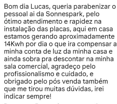 Desde então, a SonneSpark vem crescendo rapidamente, prestando serviços especializados para outras empresas do setor solar, acumulando experiência em ritmo acelerado e se destacando pela qualidade e comprometimento no pós-venda — um diferencial que muitas empresas não oferecem.